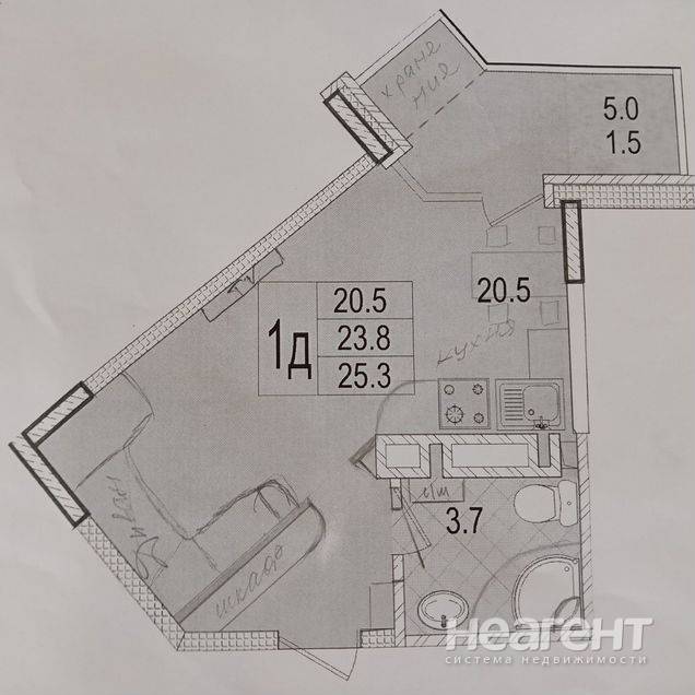 Продаю 1-комнатную квартиру площадью 25,3 кв. м на 10 этаже 20 этажного монолитно-кирпичного дома. Квартира комната 20,5 кв. м нестандартной конфигурации, что дает возможность сделать кухонную зону в стороне от спальной, ближе к выходу на лоджию. Также можно сделать отдельную прихожую и разместить шкаф-купе. Лоджия 5 кв. м тоже нестандартной конфигурации, благодаря этому можно устроить места хранения как бы в стороне от зоны отдыха. Санузел 3,7 кв. м, поместится стиральная машина. Качество строительства хорошее, к/у не высокие. Остановка транспорта 250 м.