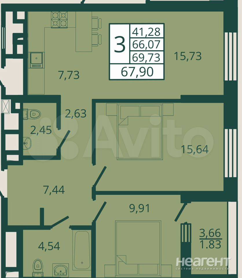 используя код Получите свой код для категории «Продажа 3-х комнатных квартир»