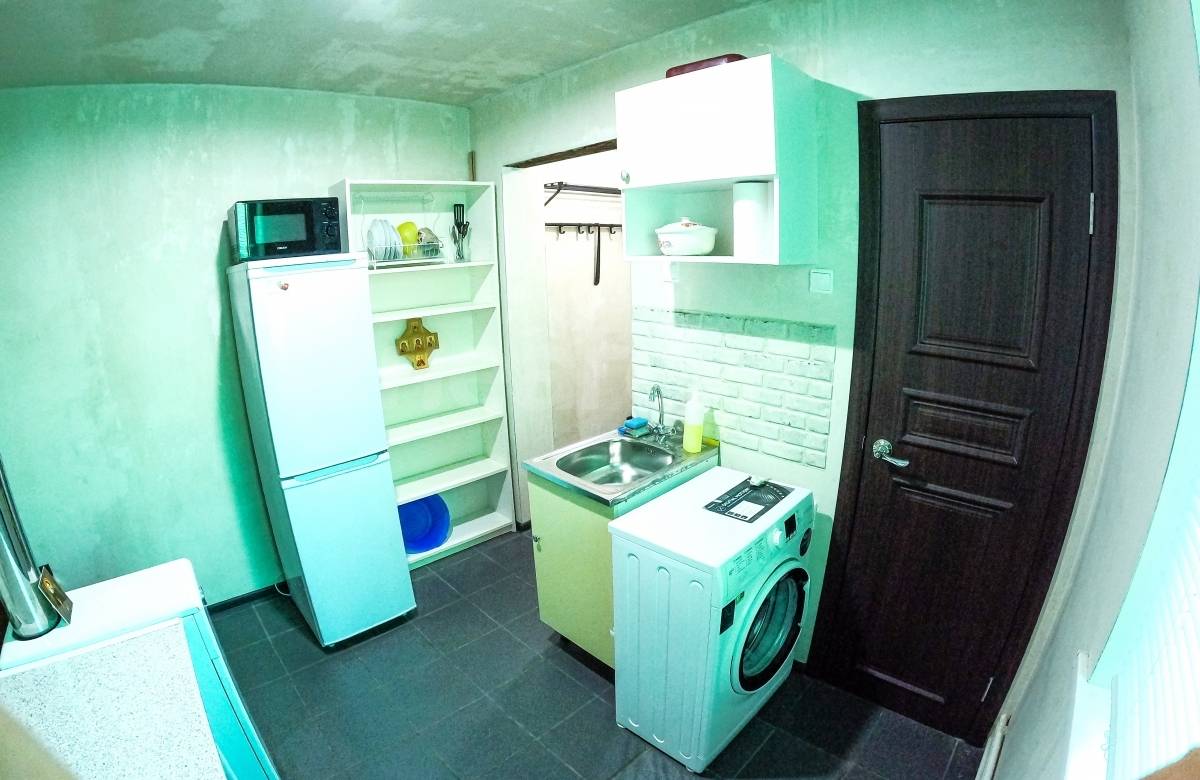 Окна мп, полы ламинат, плитка. Своё отопление АГВ (можно регулировать). Техника и мебель почти вся новая: холодильник, газовая плита, стиральная машина автомат, гладилка, электрочайник, микроволновка, посуда. В комнате окно, шкаф, стол, стул, зеркало, сушилка для белья, раздвижной современный диван.