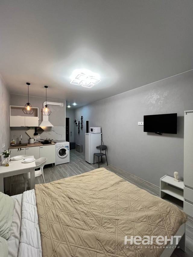 Сдается студия площадью 22 кв. м на 3 этаже. Набор посуды, приборов на 2 персоны Техника (без духовки). Арендатору предлагается оснащение: шкаф, прикроватные тумбы индукционная плита чайник холодильник кондиционер ТВ + WiFi микроволновая печь стиральная машина фен, утюг Докупается оснащение, при необходимости (подушки, постельное и т. д.) - обсуждается Рассматриваются дети студенты жильцы с животными Рассматривается субаренда Инфраструктура: Шаговая доступность к проспекту Шолохова - 15 минут Пешая доступность до Пригородного автовокзала (10 минут на машине). Близость к Областному автовокзалу - 10 мин на машине Парк Островского Дворец культуры Ростсельмаш Магазины и кафе, салоны красоты, аптеки, детские игровые площадки. Остановка общественного транспорта в шаговой доступности школа, детский сад Аптеки Магазины и рестораны Пункты выдачи (Ozon/WB). Оплата + к/у (~2,5-3 тыс в отопительный период; 2-2,5 тыс в теплое время). Залог 22 тыс. руб.