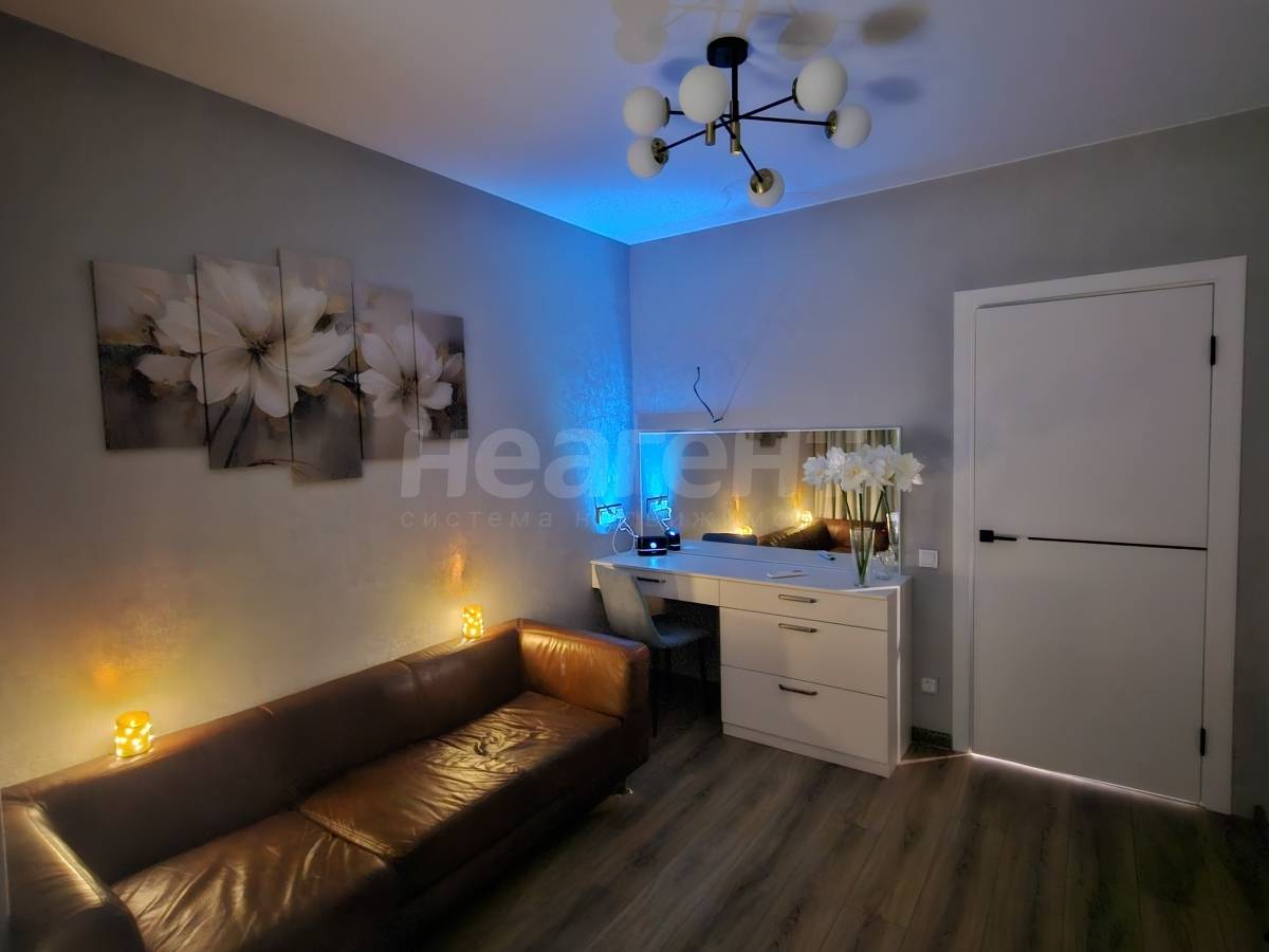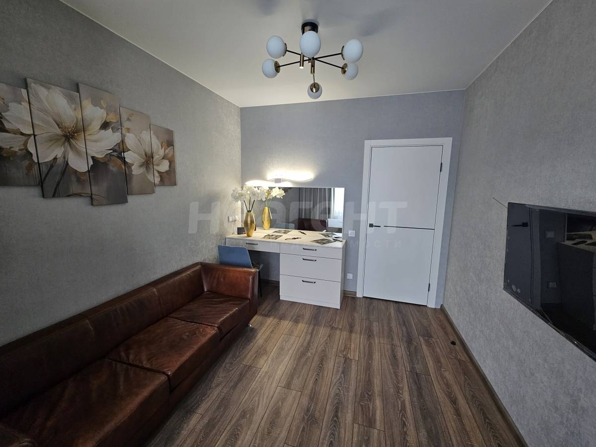 В жилой комнате предусмотрена гостиная и спальное пространство, имеющие эстетическое и функциональное разграничение. В гостиной есть новый телевизор, трехместный диван, туалетный столик-комод (можно использовать для работы, для хранения вещей), зеркало, настенный светильник. В спальной зоне новая кровать, бра в изголовье, новый анатомический матрас с двумя жесткостями сторон, теневые шторы блэкаут (blackout).