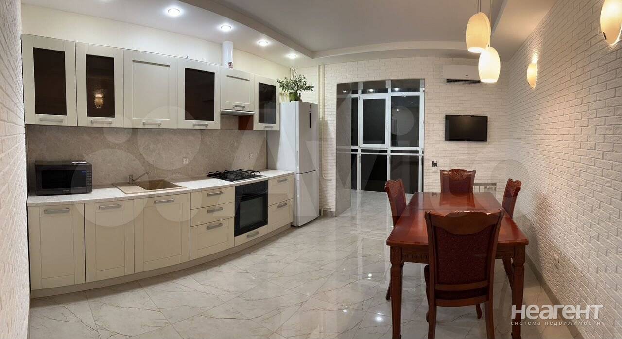 Сдаю в аренду на длительный срок 3-х комнатную квартиру площадью 111 кв. м на 5 этаже 22 этажного кирпичного дома. Квартира в самом центре города. Глядя на карту, нет смысла говорить о том, что дом расположен в идеальном месте. 1 минута от Садовой, 5 до Пушкинской. Но очень тихо, тк ниже. в доме продуктовый магазин, остановка трамваев сразу за домом. Рядом Магнит, КБ, всё необходимое. В квартире 3 изолированных комнаты, изолированная кухня (чего уже не встретишь) 2 санузла, панорамные лоджии. В каждой комнате установлен кондиционер, на кухне тоже. Очень вместительная гардеробная. Вся мебель очень дорогая, сдавать не планировали, но так вышло. Везде установлены бойлеры. Газ на кухне. В квартире есть всё для комфортного проживания. Соседи тихие, что важно. Заведен интернет, (Ростелеком) но естественно сейчас договор приостановлен. Могу показать в удобное время, тк живу недалеко. К/у оплачиваются отдельно, в зависимости от вашего потребления. Залоговый депозит в размере ежемесячного платежа. Залог 80000 руб. Для арендаторов без животных. Можно с детьми.