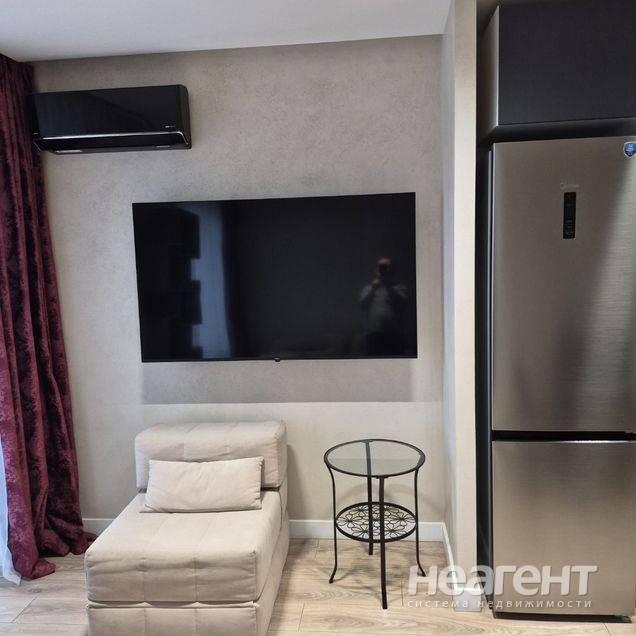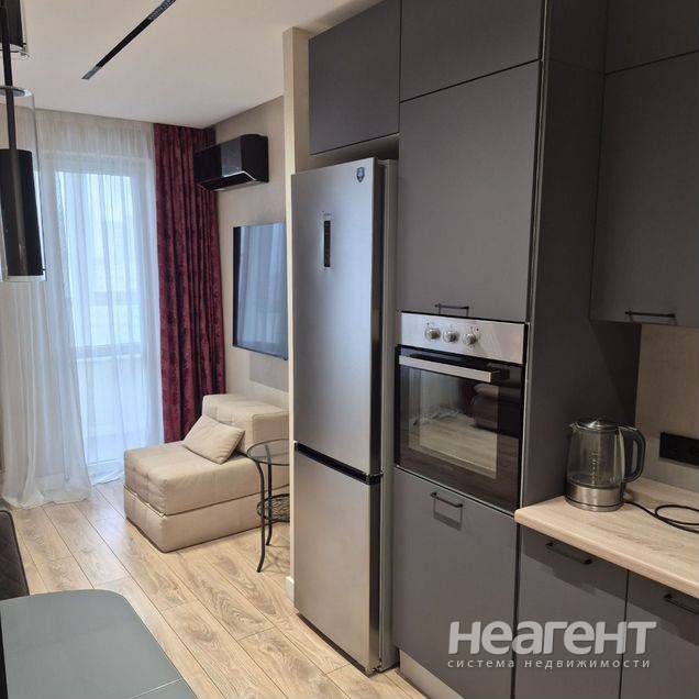 Сдаю в аренду 1-комнатную квартиру площадью 30 кв. м на 12 этаже 24 этажного монолитного дома. Сдаю в аренду стильную студию с дизайнерским ремонтом в монолитном доме 2021 года постройки. Просторная кухня оснащена современным холодильником, плитой и микроволновой печью. В комнате установлен кондиционер и телевизор. Совмещённый санузел выполнен в современном стиле с душевой кабиной. Балкон застеклён. Дом оборудован двумя пассажирскими лифтами и грузовым лифтом. Для автомобилей предусмотрена наземная многоуровневая парковка. Залог 20000 руб. Для арендаторов без детей и без животных.