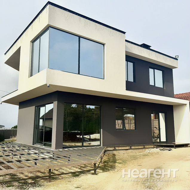 Продаю дом площадью 220 кв. м на участке 4,5 соток. Уважаемые потенциальные покупатели, это объявление - продажа от собственника напрямую. Уважаемые риелторы, звоните только если у вас есть заинтересованный покупатель, договор на эксклюзив - не подписываю. Продаю новый двухэтажный монолитный дом в архитектурном исполнении Хай-тек общей площадью 220 м. О доме: Здание с монолитной железобетонной плитой в основании, стены и перекрытия полностью отлиты из бетона. В итоге дом представляет собой цельную бесшовную армированную конструкцию. Построен на века. Панорамное остекление закаленным стеклом в алюминиевых рамах, из основных комнат открываются красивые виды на сосновый лес. Потолки высотой 3,3 метра. Есть промежуточные фото/видео этапов строительства. Коммуникации: Электричество - 15 кВт, прямой договор. Вода - собственная скважина. Канализация - септик. Отопление - электрокотел, кондиционеры. Газ - проходит по границе участка, тех. условия оплачены, проект выполнен и оплачен. Частично выполнен ремонт, при желании будет передан готовый дизайн-проект. Новым собственникам остается кухонный гарнитур премиум сегмента (стоимость 1 млн), прихожая, диван, мебель в санузле, остальное при желании. Оптимальная планировка пространств обоих этажей. На 1-ом этаже прихожая, большая кухня-гостиная с понорамными окнами, кабинет, санузел с душевой, техническая комната. Теплый пол по всей площади этажа, в санузле - теплые стены. На 2-ом этаже три изолированные комнаты: две детские и мастер-спальня с понорамными окнами и гардеробной, санузел с ванной. Из спальни и одной детской - выход на большой балкон. Инфраструктура: школа Экотех, садики, магазины, поликлиника новая, 3,5 км до пляжа Автобат. Асфальтированный прямой заезд с Фиолентовского шоссе. В часы-пик до Фиолентовского кольца - 6 минут. Лёгкий доступ ко всем ключевым точкам города. Вокруг престижные дома, спокойные семейные соседи. Участок огорожен, ворота от пульта, много места для парковки, на территории просторная бытовка, подземное сооружение с оборудованием для коммуникаций. Участок крайний, граничит с охранной зоной леса, что означает что никогда не будет соседней застройки. Один собственник. Продажа срочная, цена снижена с учетом необходимости завершения ремонтных работ. Торг возможен.