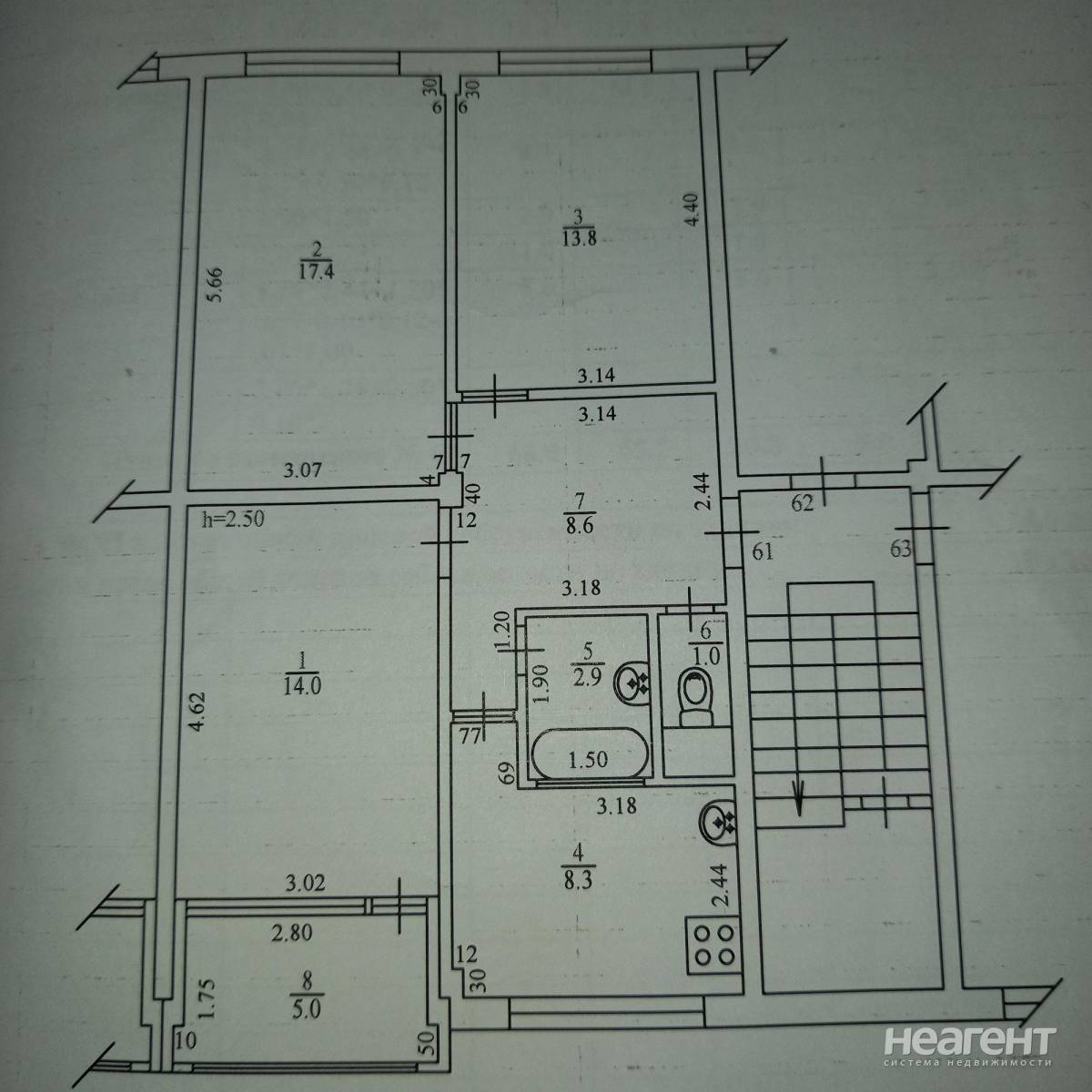 Продается 3-х комнатная квартира, 68,9 м²
