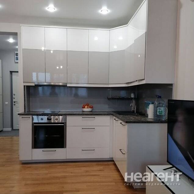 Квартира на втором этаже монолитного дома, построенного в 2021 году. Просторная комната с панорамными окнами открывает вид во двор, где расположена закрытая территория с детской и спортивной ...
