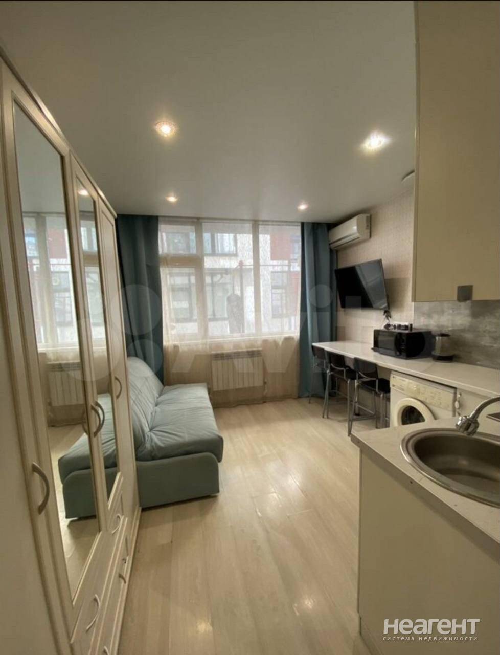 Продаю 1-комнатную квартиру площадью 17 кв. м на 1 этаже 3 этажного монолитного дома. На территории два бассейна, один подогреваемый Две детских площадки Площадка с тренажерами Коммерческая сауна Остановка, супермаркеты, пекарня и тп в 300 метрах от дома в квартире газовое отопление.