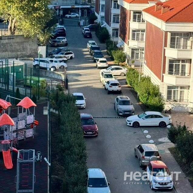 Окна выходят во двор. Во дворе парковка, магазин Пятерочка. До моря пешком 15-20 минут, идем мимо кафе, ресторанов, торговых точек, сувенирных лавок Адлеркурорта, на территории которого ...