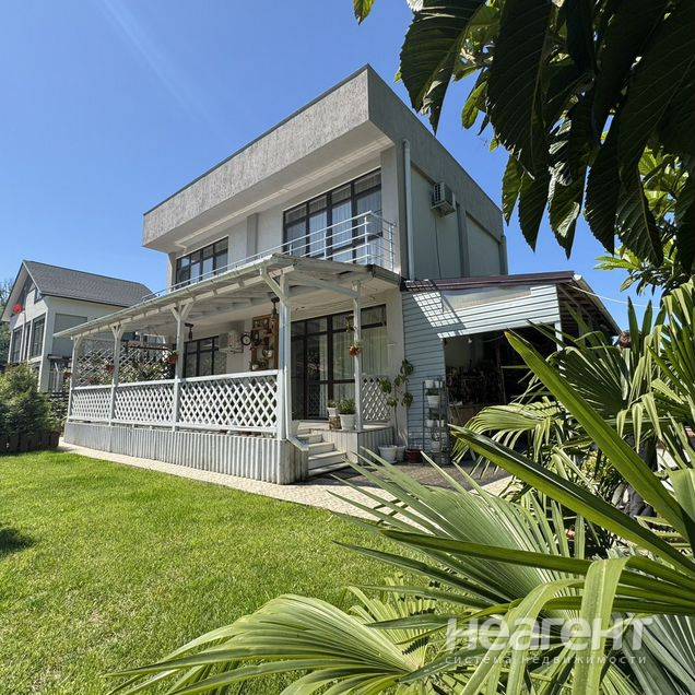 Продаю дом площадью 140 кв. м на участке 5 соток. Собственник. Продам или обменяю свой личный дом в стиле Хай-Тек, с современным ремонтом, мебелью и техникой, полностью готовым к заселению. От вас только тапочки. Все, что видите на фото, остаётся, кроме личных вещей. Дом прочный, теплый. Построен на бетонной подушке, выполнена гидроизоляция фундамента. Дом утеплен каменной ватой. Построен по технологии бетонный монолитный каркас с заполнением керамзитоблок. В доме панорамное остекление, из окон открывается вид на горы. Дополнительно к общей площади дома - есть обустроенная эксплуатируемая кровля 70 кв. м, которую можно использовать по своему усмотрению, а также летняя терраса площадью 30 кв. м, с выходом из дома и видом на лес и горы. Планировка дома: На первом этаже расположена просторная кухня-гостиная, функциональная котельная, санузел и кладовая и спальня в светлых тонах. На втором этаже три спальни, гардероб, санузел и небольшая кладовая. Пространство распланировано с умом, чтобы было комфортно жить. Отопление - тёплый водяной пол, обеспечиваемый электрическим котлом (электричество - сельский тариф). Подключение газа запланировано на лето. в доме зимой тепло, а летом прохладно. Электричество - 15 кв, водоснабжение - центральное от садового товарищества, канализация - локальная очистная система. Низкие к/у. На участке выполнен дренаж. Участок тупиковый, граничит с лесным массивом, абсолютно ровный. Здесь всегда тихо и спокойно. Участок распланирован: парковочные места на 4 авто, зона отдыха в окружении пальм и туй, цветочные клумбы и молодой плодоносящий сад (мандарины, лимон, киви, виноград, персик, черешня, инжир, малина и виноград) мастерская и небольшой огород, также выделена мангальная зона. При желании дополнительно можно установить бассейн. Удобная локация. До Сириуса всего 5 минут на авто. Низина, никаких подъемов в гору. в шаговой доступности супермаркеты Пятерочка, Магнит, всевозможные магазины и аптека. В 200 метрах от дома остановка общественного транспорта, а также выезд на краснополянскую скоростную дорогу. Транспортная развязка позволяет добраться до аэропорта на автомобиле всего за 7 минут, до Красной поляны 30 минут, до федеральной территории Сириус 5 минут, до моря 10 минут, до центра Адлера 10 минут. Полная сумма в договоре купли продажи, один собственник. Все в собственности. Прописка в доме. Дом продаем в связи с переездом в другой регион. Рассмотрим обмен на квартиру в Москве или дом в Подмосковье с вашей доплатой. Контактное лицо