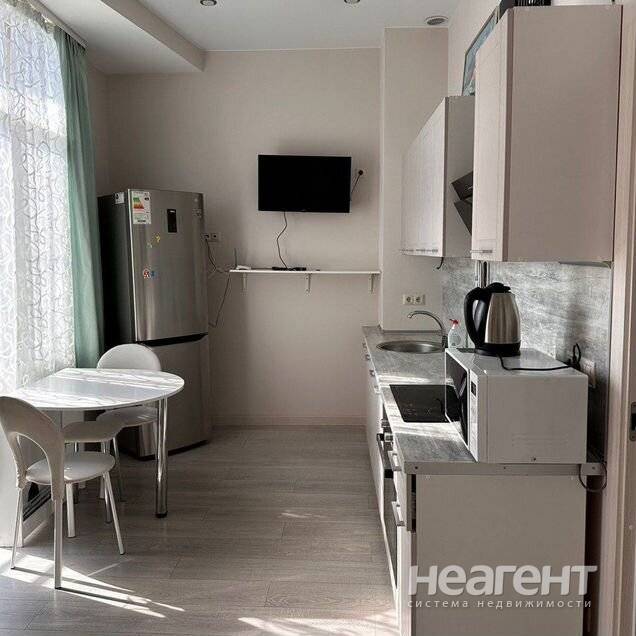 Уютная студия с современным евроремонтом в монолитном доме 2017 года постройки. Просторная кухня оборудована всем необходимым, включая холодильник и стиральную машину. Из окон открывается ...