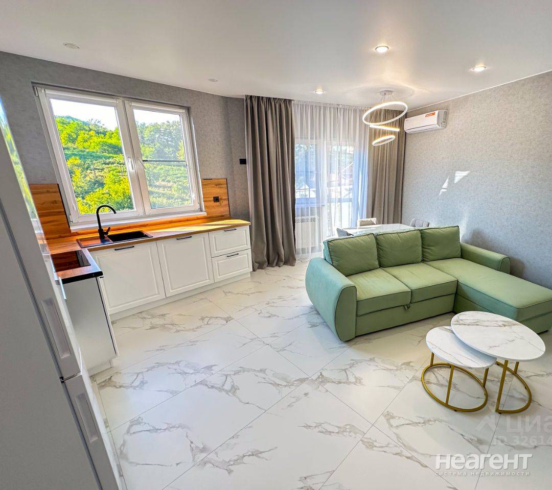 Сдаю в аренду на длительный срок 1-комнатную квартиру площадью 46 кв. м на 11 этаже 12 этажного дома. В квартире выполнен дизайнерский ремонт. Установлена вся необходимая техника, включая посудомоечную машину, 2 сплит-системы. В спальне 2-х спальная кровать и шкаф-купе для хранения. В гостиной раскладной диван, шкаф для хранения вещей. Прекрасный вид на горы. Закрытая территория с благоустроенным двором, детской площадкой, площадкой для спорта и парковкой. Остановка и магазины в 100 метрах. До центра Сочи на машине 20 минут, до аэропорта 40 минут.