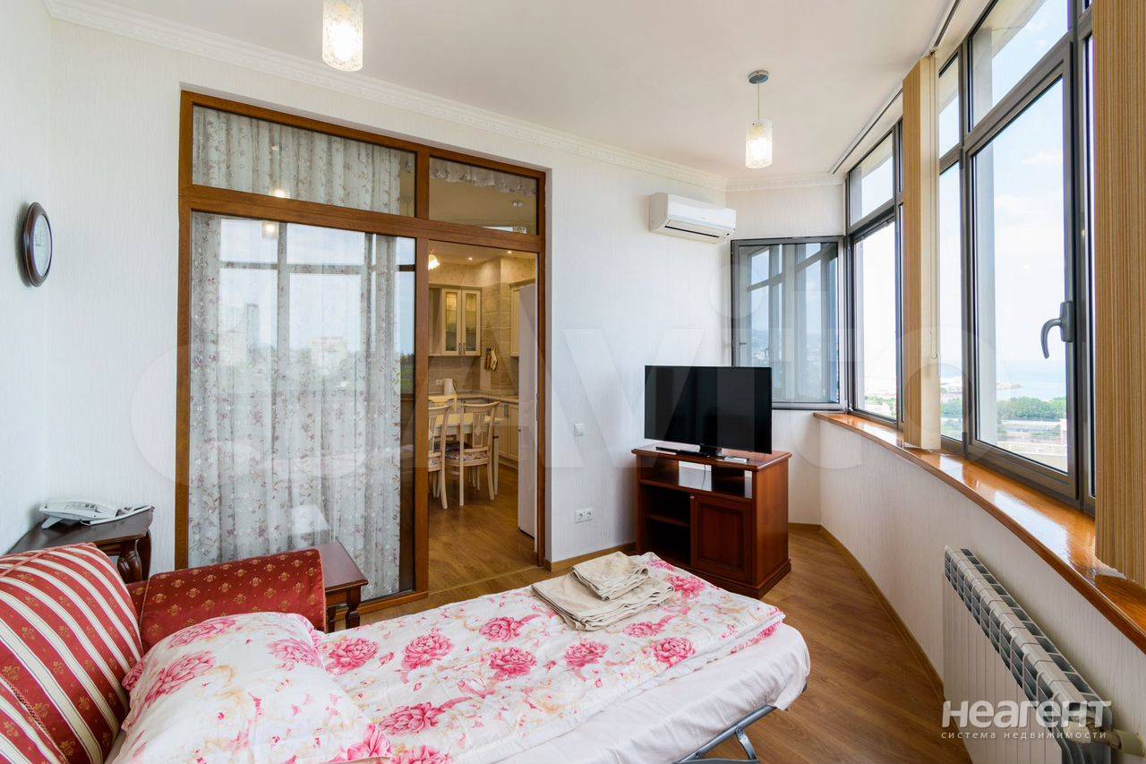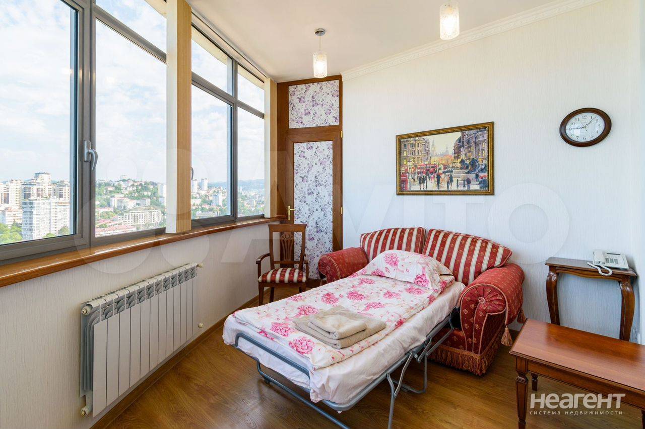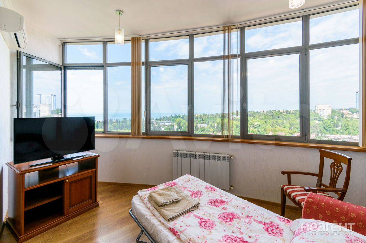 Сдаю в аренду на длительный срок комнату площадью 20 кв. м на 17 этаже 22 этажного монолитного дома. 1). Комната сдаётся на длительный срок только одной девушке. 2). С мужчинами, детьми и животными нельзя. 3). Приводить с собой гостей без разрешения нельзя. 4). Курить в квартире нельзя. 5). Комната там, где стоит женский трельяж. 6). К комнате также прилагается балкон. 7). Комната закрывается на ключ. 8). Вся квартира целиком не сдаётся. 9). в других комнатах могут проживать другие девушки, а также мужчина хозяин квартиры. 10). Прямой вид из окна на море, парк Ривьера, горы. 11). Фото реальные. Всё как на фото. 12). Есть страховой депозит 3000 рублей. Возвращаю при выезде после возврата ключей. 13). Без паспорта не заселяю. 14). При заселении делаю фото паспарта и фото владельца паспорта. 15). Возможно проживание на короткий срок с посуточной оплатой. Цена зависит от срока и количества человек. Описание квартиры: Квартира в самом центре г. Сочи. 17-ый этаж в 22-ух этажном доме бизнес-класса Воровского 41. Отличный вид на море и парк «Ривьера». Два раздельных туалета, большая джакузи, кухня, две большие спальни, два кабинета, гостиная. В пяти минутах ходьбы находится торговая галерея, морской порт, парк Ривьера, школа, садик, поликлиника, рынок, а также многочисленные кафе, бары, рестораны и клубы.