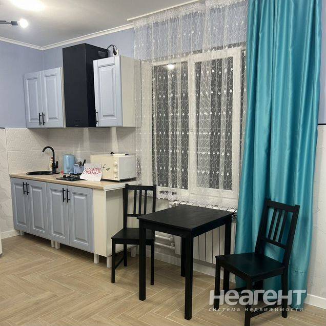 Сдаю в аренду 1-комнатную квартиру площадью 25 кв. м на 2 этаже 2 этажного панельного дома. Сдаю в аренду маленькую студию на месяц или два. можно посуточно. Внутри санузел, кухонная зона (микроволновка, холодильник, чайник, мультиварка, посуда), кондиционер, телевизор, интернет, отопление -батареи (сетевой газ). До остановки 2 мин, гипермаркет через дорогу. Для арендаторов без детей и без животных.