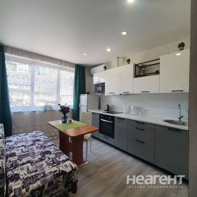 Однокомнатная, вторая комната совмещена с кухней. В квартире два дивана. Всего 4 спальных места. В квартире вся необходимая бытовая техника, кондиционеры. Свежий ремонт. Быстрый wifi. Район ...