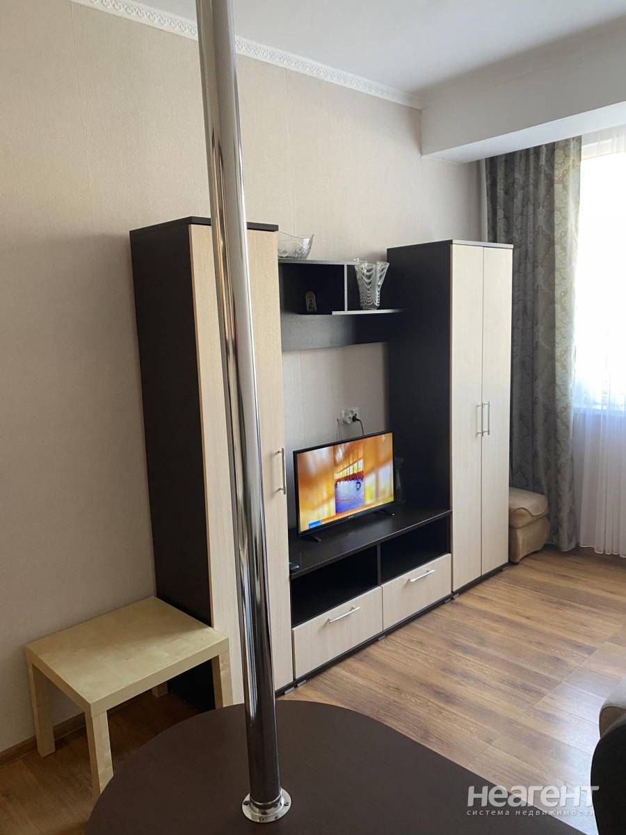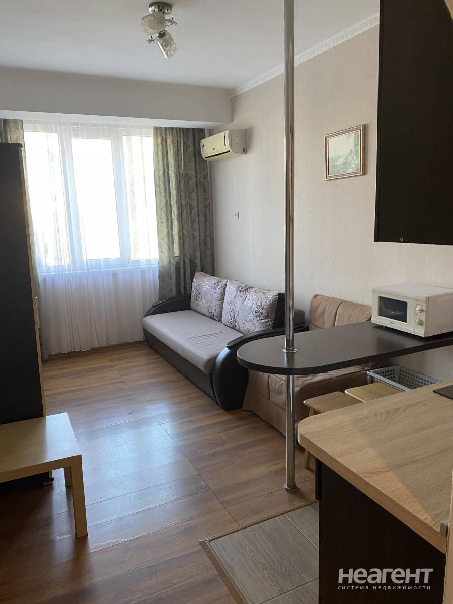 Сдаю в аренду на длительный срок 1-комнатную квартиру площадью 25 кв. м на 4 этаже 9 этажного дома. Квартира студию на длительный срок со всеми удобствами. Рядом остановка, магазин, аптека. Кондиционер, телевизор, холодильник, стиральная машина, микроволновка, электрочайник. Оплата в месяц + к/у, залог. Подробности по телефону. Посредникам просьба не беспокоить.