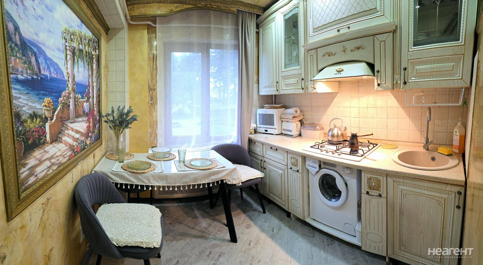 Из окна потрясающий вид на море. в квартире имеется вся необходимая мебель и техника: удобный большой диван, холодильник, стиральная машина, СВЧ печь, индукционная варочная панель, кондиционер ...