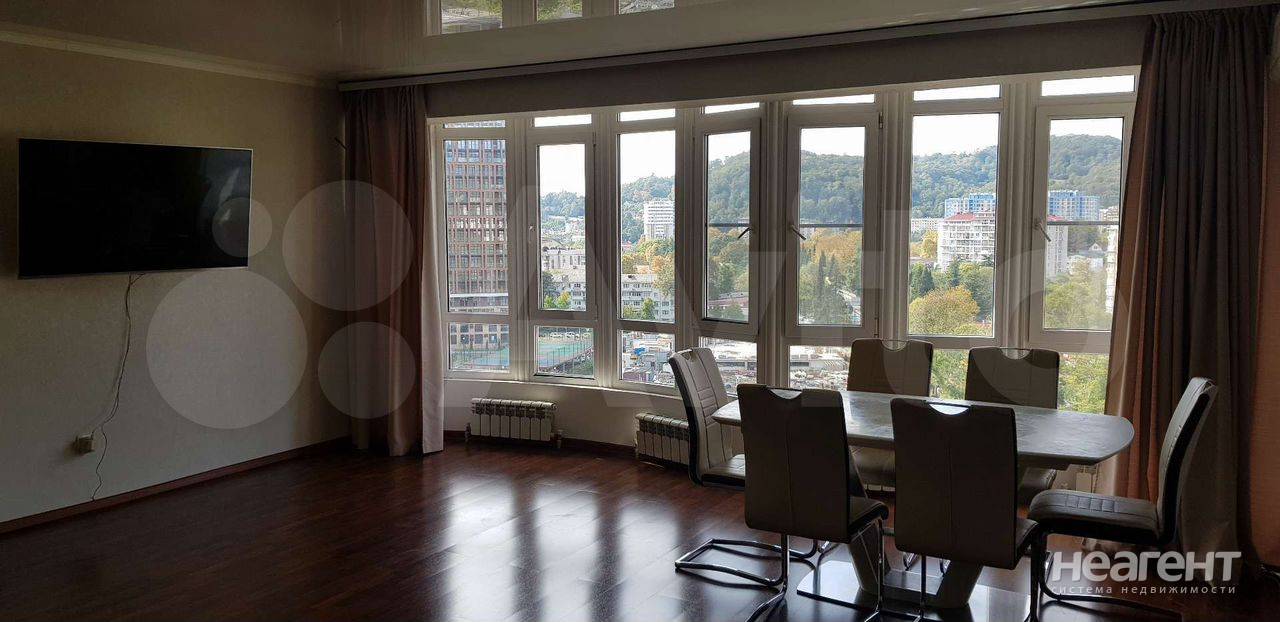 Сдаю в аренду 3-х комнатную квартиру площадью 101 кв. м на 8 этаже 8 этажного монолитного дома. Сдается двухуровневая 3-х комнатная квартира в центре Дагомыса с новым ремонтом, техникой и мебелью. В каждой комнате установлен кондиционер. В квартире 2 санузла. Магазины, школа, детский сад, остановка. Сбербанк в шаговой доступности. До моря 900 м. Собственник. Залог 55000 руб. Для арендаторов без животных. Можно с детьми.