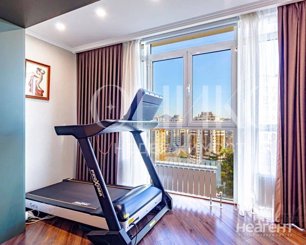 Высокий этаж. евроремонт, полностью оборудована мебелью и бытовой техникой, кондиционеры, сан/узел с большой ванной, индивидуальное отопление, во дворе закрытая парковка. Вид в сторону ...
