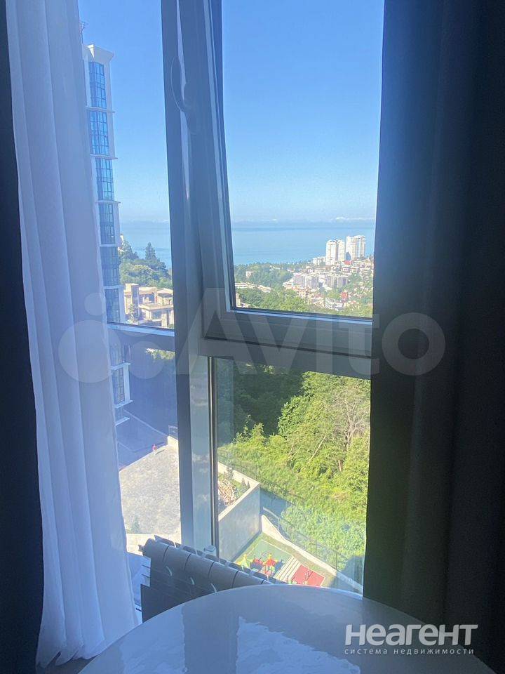 Сдаю в аренду на длительный срок 1-комнатную квартиру площадью 18 кв. м на 16 этаже 20 этажного монолитного дома. Новая, уютная и светлая квартира-студия с панорамным видом на море. в квартире выполнен новый современный ремонт с теплыми полами по всей площади. Имеется всё необходимое для комфортного проживания: два спальных места (раскладной диван с независимым пружинным основанием), большой шкаф для хранения, постельные принадлежности, кондиционер, холодильник, телевизор, посуда, сушилка для белья, стиральная машина, утюг, микроволновая печь, WI-FI. Квартира в новом жилом комплексе бизнес класса «Сочи парк». Расположен в одном из самых тихих и зеленых микрорайонов Сочи - на северном склоне горы Бытха. Вся территория комплекса более 20. Га. На территории высажено множество цветов и более 100 пальм, имеются прогулочные зоны, спортивные и детские площадки. Территория жилого комплекса закрытая и охраняемая. Для проживающих бесплатное парковочное место на территории. Через дорогу расположен торговый центр Сочи Парк: Пятерочка. Аптека, МФЦ. Винотека. Барбершоп, частный детский сад. Озон. Сдэк. Яндекс Маркет, остановка общественного транспорта. В 10 минутах ходьбы Магнит и К&Б. До центра - 10 мин на машине/автобусе, 3 минуты до Сочинского Дублера, по которому удобно добираться до Олимпийского парка, аэропорта. Красной поляны. До ближайшего пляжа - 10 мин транспортом. Залог 45000 руб. Для арендаторов без животных. Можно с детьми.