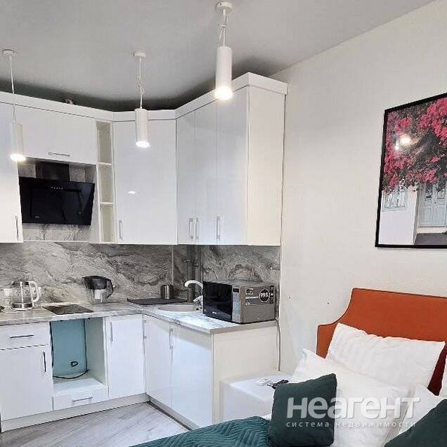 Сдаю в аренду на длительный срок 1-комнатную квартиру площадью 21 кв. м на 2 этаже 3 этажного монолитного дома. Курение запрещено, можно с детьми, но без животных. Квартира находится на втором этаже трехэтажного здания. В студии выполнен косметический ремонт, что создает уютную атмосферу. Просторная комната оборудована двуспальной кроватью и шкафами для хранения вещей. В наличии вся необходимая мебель: шкаф, стол и стулья. Кухня оснащена современной техникой, включая холодильник и микроволновую печь. в ванной комнате установлена стиральная машина. На территории комплекса есть бассейн с зоной отдыха, где можно расслабиться после активного дня. Дом расположен в тихом районе с развитой инфраструктурой. Для арендаторов без животных. Можно с детьми.