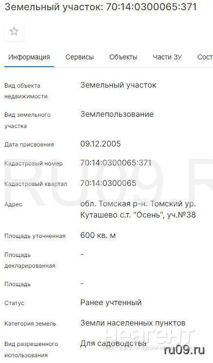 Продаю участок площадью 6 сот. Собственник. Адрес: Томская обл. Томский р-н, тер ДНТ Осень (ур-ще Куташево), уч. 154. Кадастровый номер 70: 14: 0300065: 283. ...