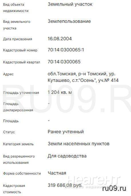 Продаю участок площадью 6 сот. Собственник. Адрес: Томская обл. Томский р-н, тер ДНТ Осень (ур-ще Куташево), уч. 154. Кадастровый номер 70: 14: 0300065: 283. ...