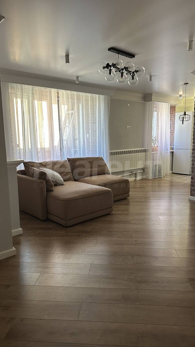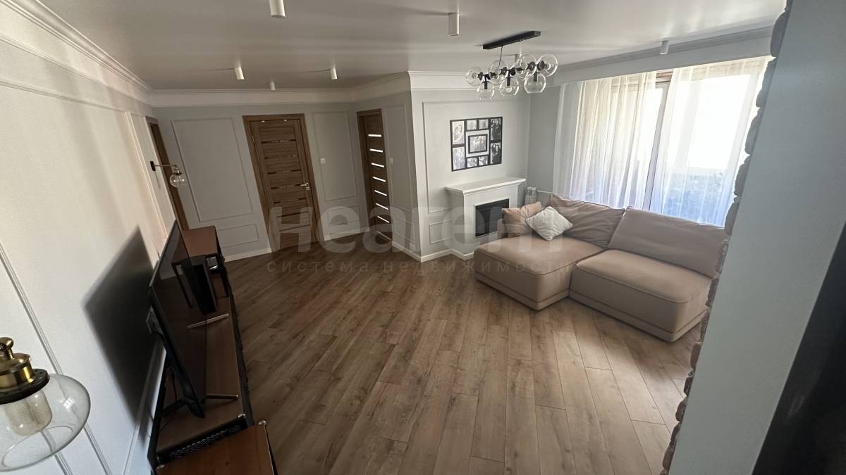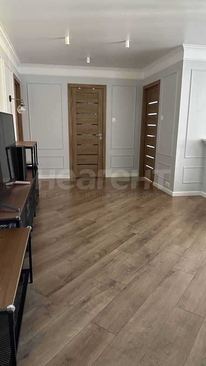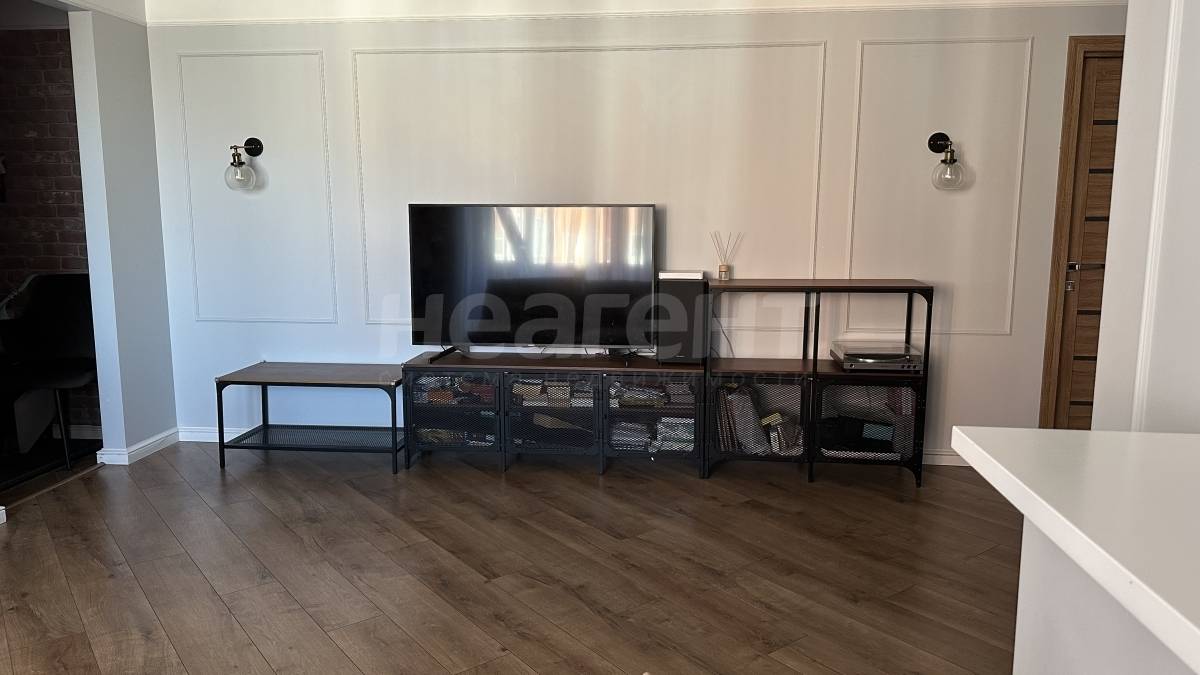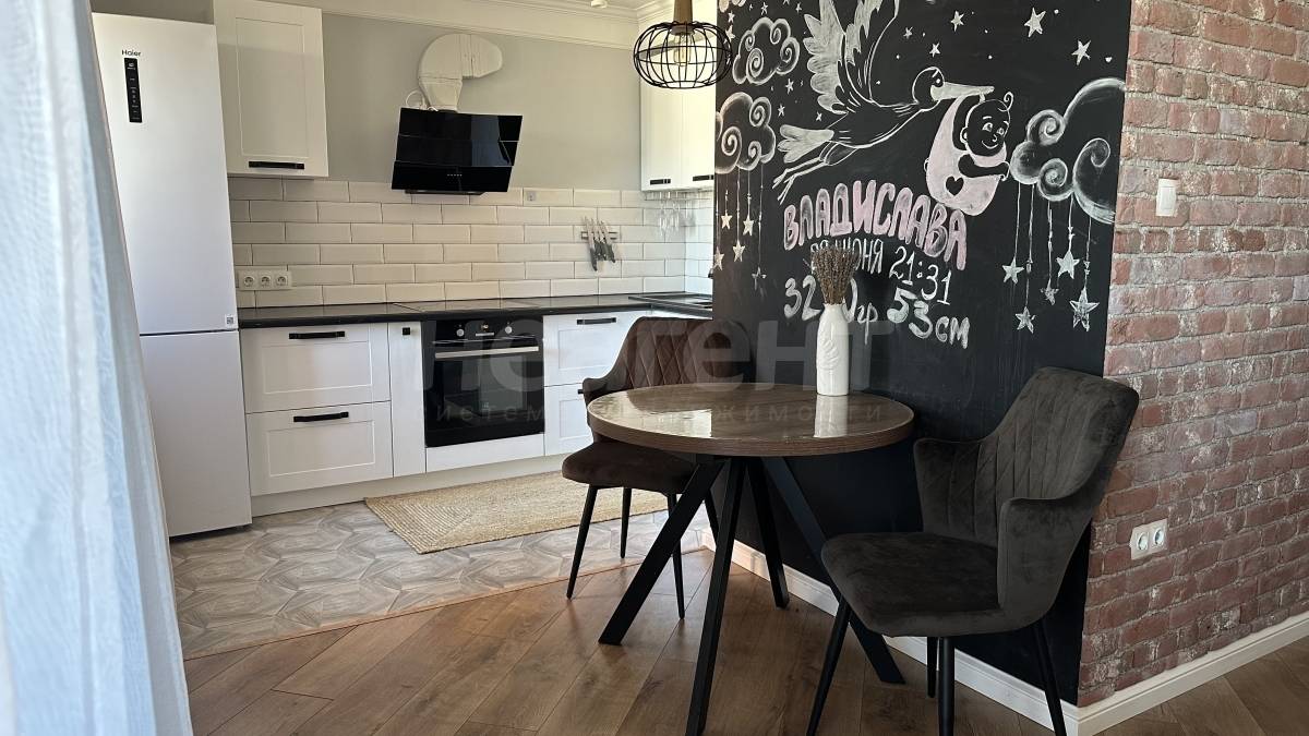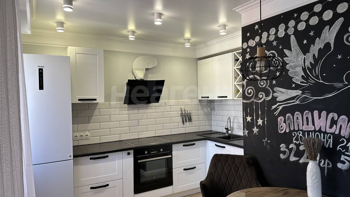 Ремонт выполнен в спокойных тонах, по дизайн проекту в стиле классика-лофт. Новым жильцам останется встроенная мебель, освещение, кухонный гарнитур с вытяжкой.