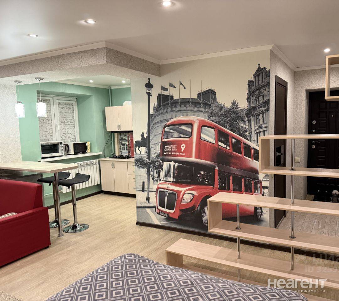 Квартира с косметическим ремонтом. Просторная комната светлая благодаря окнам, выходящим во двор, что обеспечивает тишину и спокойствие. В комнате установлен удобный диван и рабочий стол ...