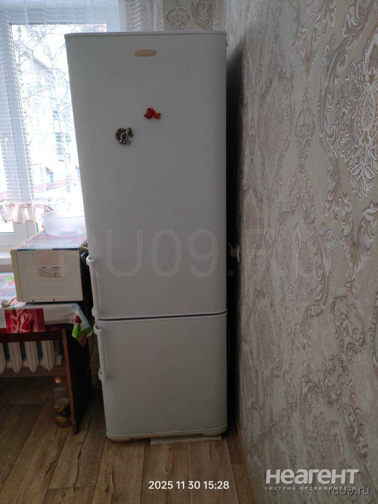 Переделанную в евродвушку. Кухня в коридоре. Две комнаты, одна пустая, во второй есть диван и стол со стульями, большой шкаф купе. в кухне небольшой кухонный гарнитур, холодильник, микроволновая ...