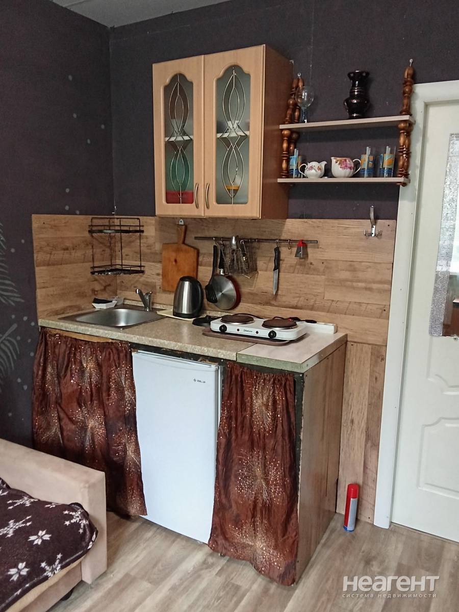 Квартира секционного типа (12 кв. м) с мебелью (диван, кресло-диван, компьютерный столик, гардеробная из двух шкафов) и бытовой техникой (электроплитка в 2 конфорки, холодильник, стиральная ...