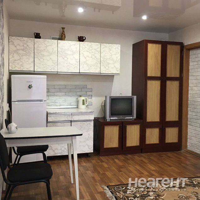 Квартира секционного типа (12 кв. м) с мебелью (диван, кресло-диван, компьютерный столик, гардеробная из двух шкафов) и бытовой техникой (электроплитка в 2 конфорки, холодильник, стиральная ...