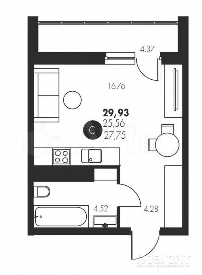 Продается 1-комнатная квартира, 24,9 м²