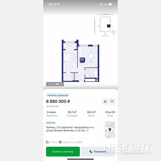 Продаю 1-комнатную квартиру площадью 43,7 кв. м на 7 этаже 25 этажного монолитного дома. г. Тюмень, в ЖК Космо, 5-й заречный м-н, ул. Евгения-Войнова, 3 к. 2 стр. на сайте у застройщика вся информация по ЖК имеется, в том числе можно сравнить стоимость. Без обременений. Реальному покупателю скину, пока не продали встречную недвижимость.