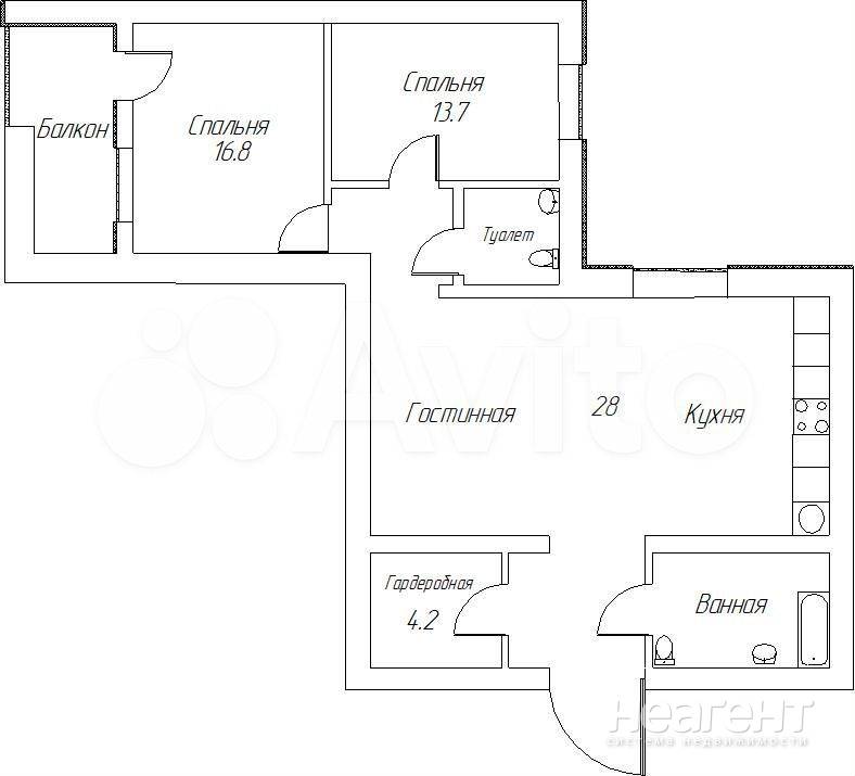 Продается 2-х комнатная квартира, 68,3 м²
